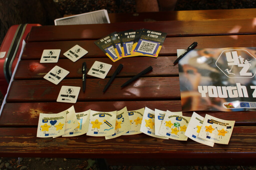 V rámci projektu Youth Zone jsme představovali evropské příležitosti a Evropské cíle pro mládež. Naši dobrovolníci zájemcům vysvětlovali, jakým způsobem se můžou zapojit a dál se rozvíjet v rámci evropských programů, jako je Erasmus+, Evropský sbor solidarity a dalších. Za pomoci interaktivních her zájemcům představovali 11 Evropských cílů pro mládež a jakým způsobem na ně navazují i zmiňované evropské programy pro mládež.