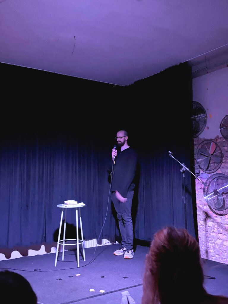 Během týdne jsme se také dvakrát zúčastnili stand-up večerů v místních barech, abychom viděli stand-up naživo. Dozvěděli jsme se také něco málo o slangu stand-upu a o tom, jak to funguje v zákulisí. Vše to byla příprava na náš hlavní výstup – poslední večer jsme měli vystoupit na pódiu a během pěti minut předvést vlastní stand-up na téma lidských práv.