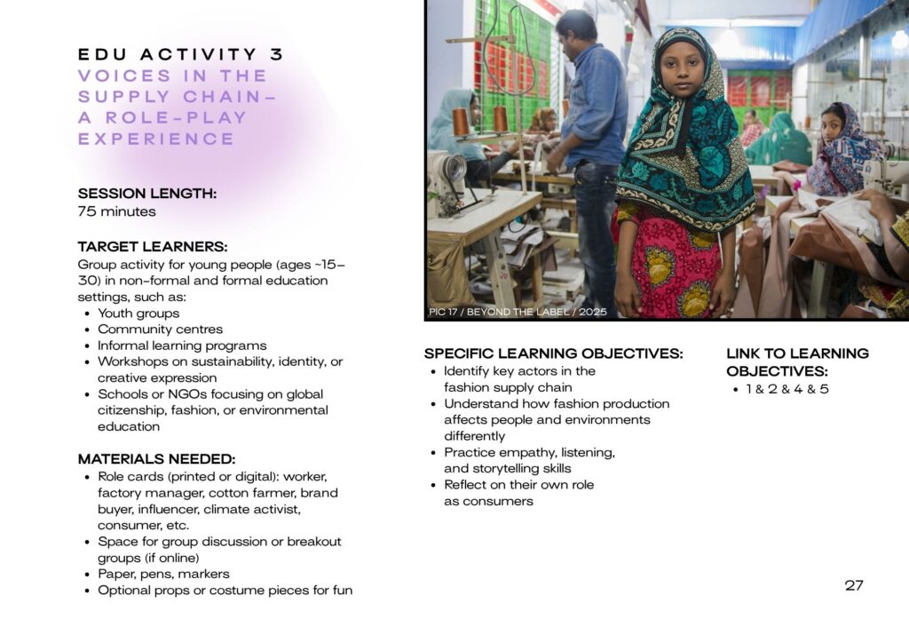 Designed for youth workers, educators, NGO staff, trainers, and volunteers who want to explore sustainable and ethical fashion with young people