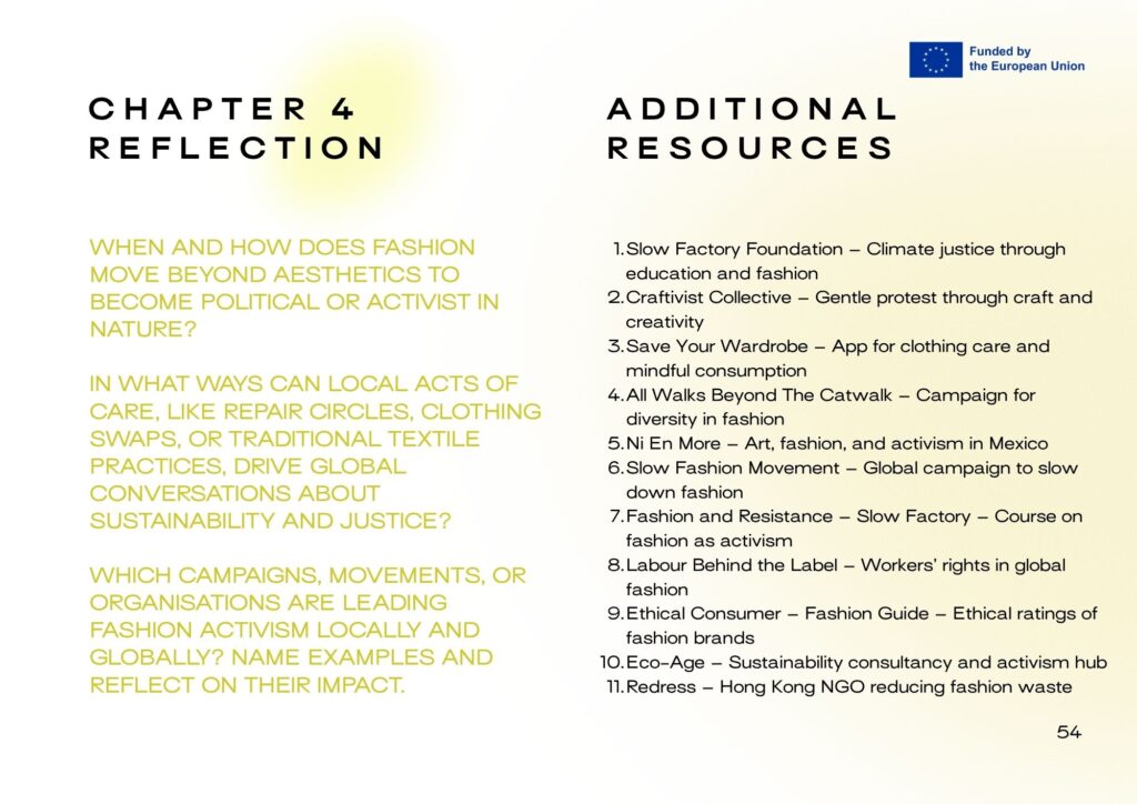 The creation of the toolkit was led by Fashion Revolution Czech Republic, an associated partner of the project, in collaboration with participants of the Wear the Future training course, which took place in April 2025 in the Czech Republic.